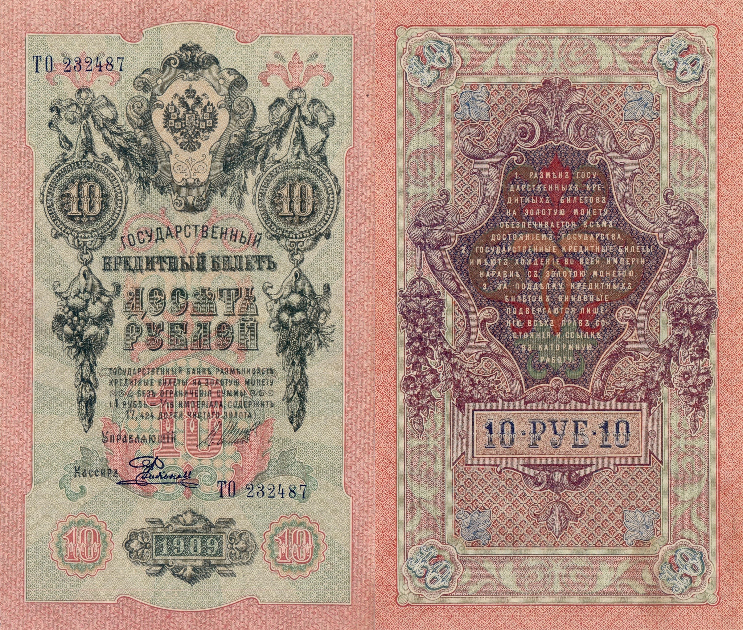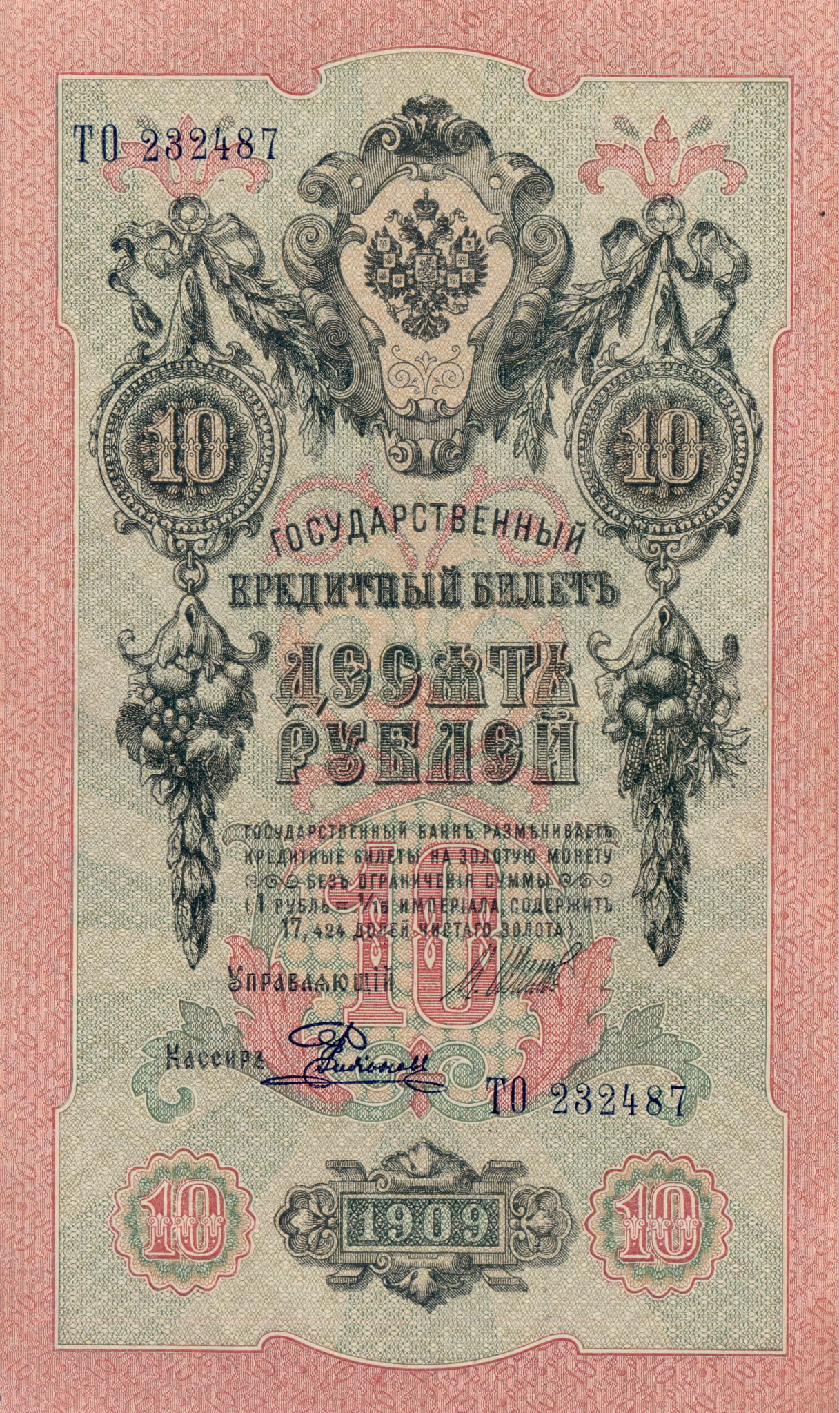 Rosja 10 Rubles P-11c 1909 aUNC