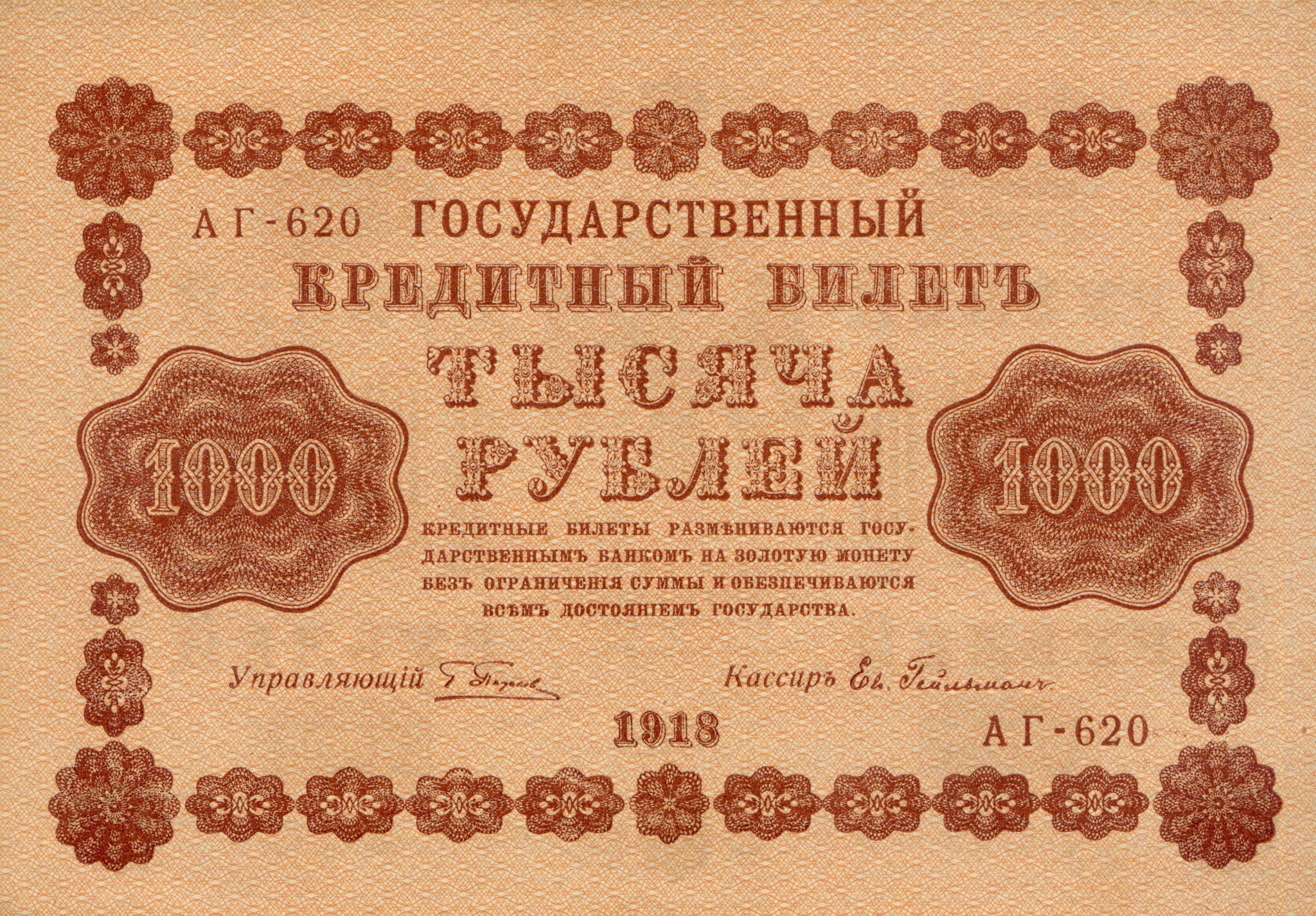 Rosja 1000 Rubles P-95 1918 UNC