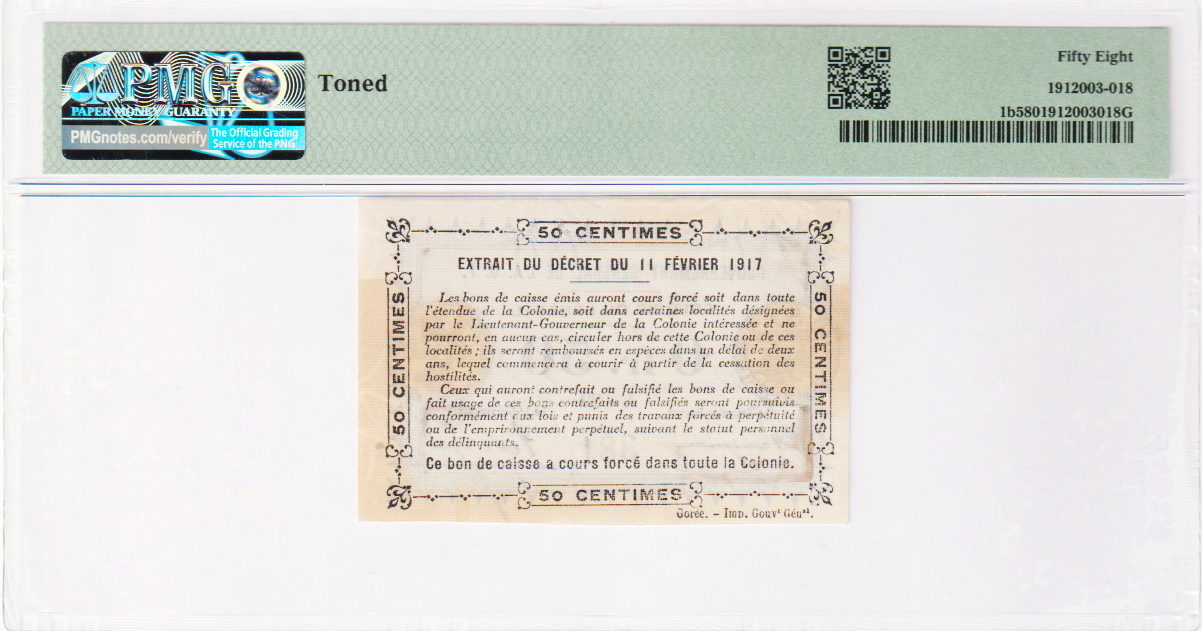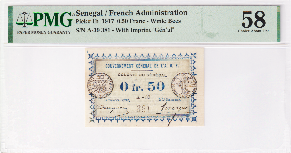 Senegal 0,50 Franc P-1b 1917 PMG 58