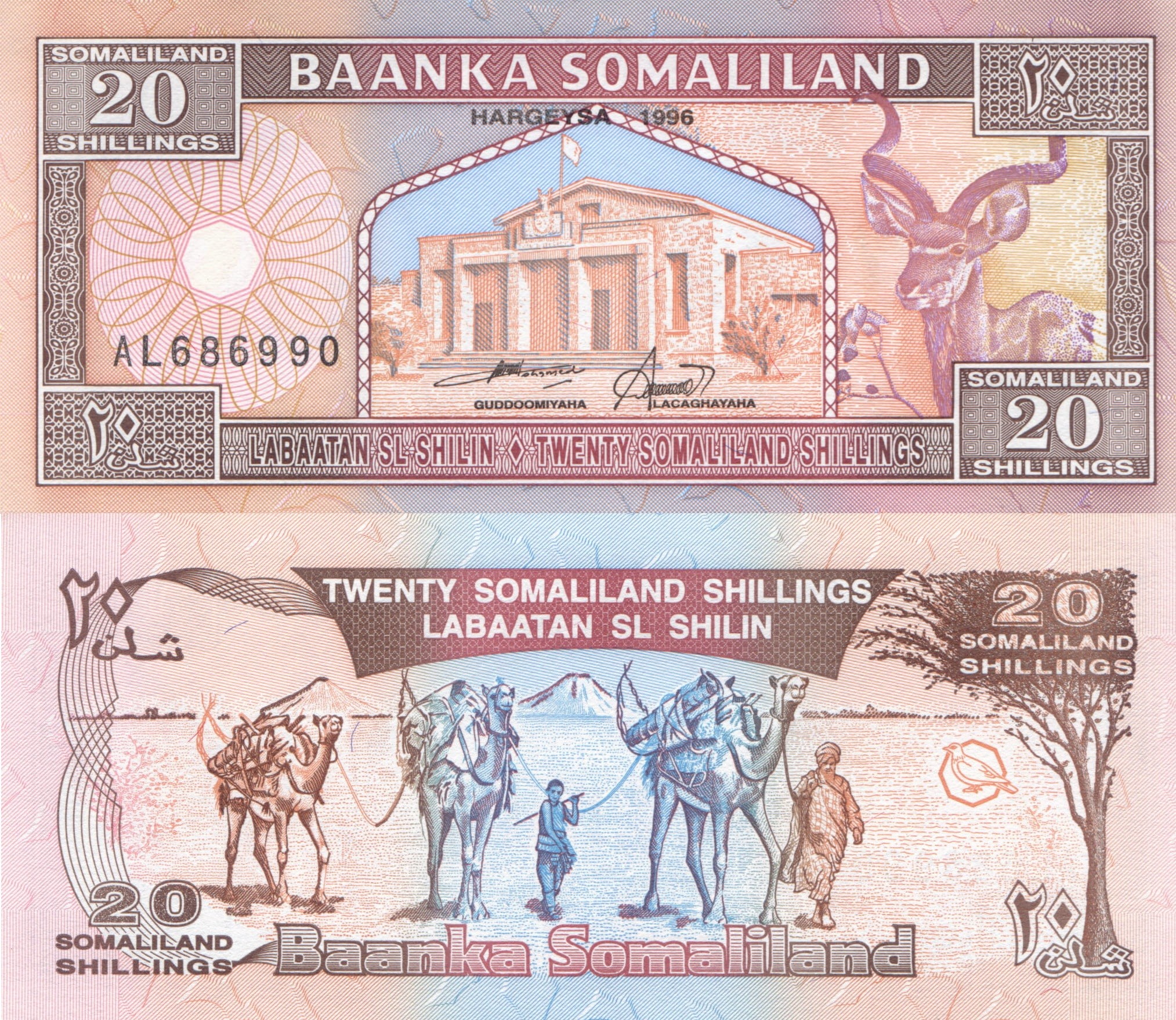 Somaliland 20 Shillings P-3b 1996 UNC