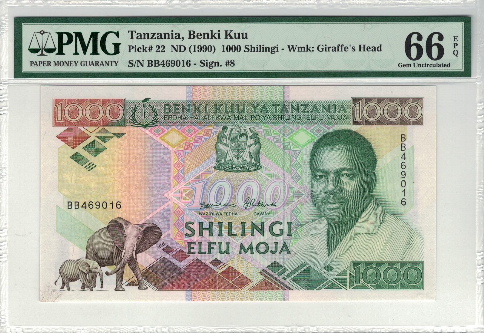 Tanzania 1000 Shilingi P-22 1990 Stan PMG 66