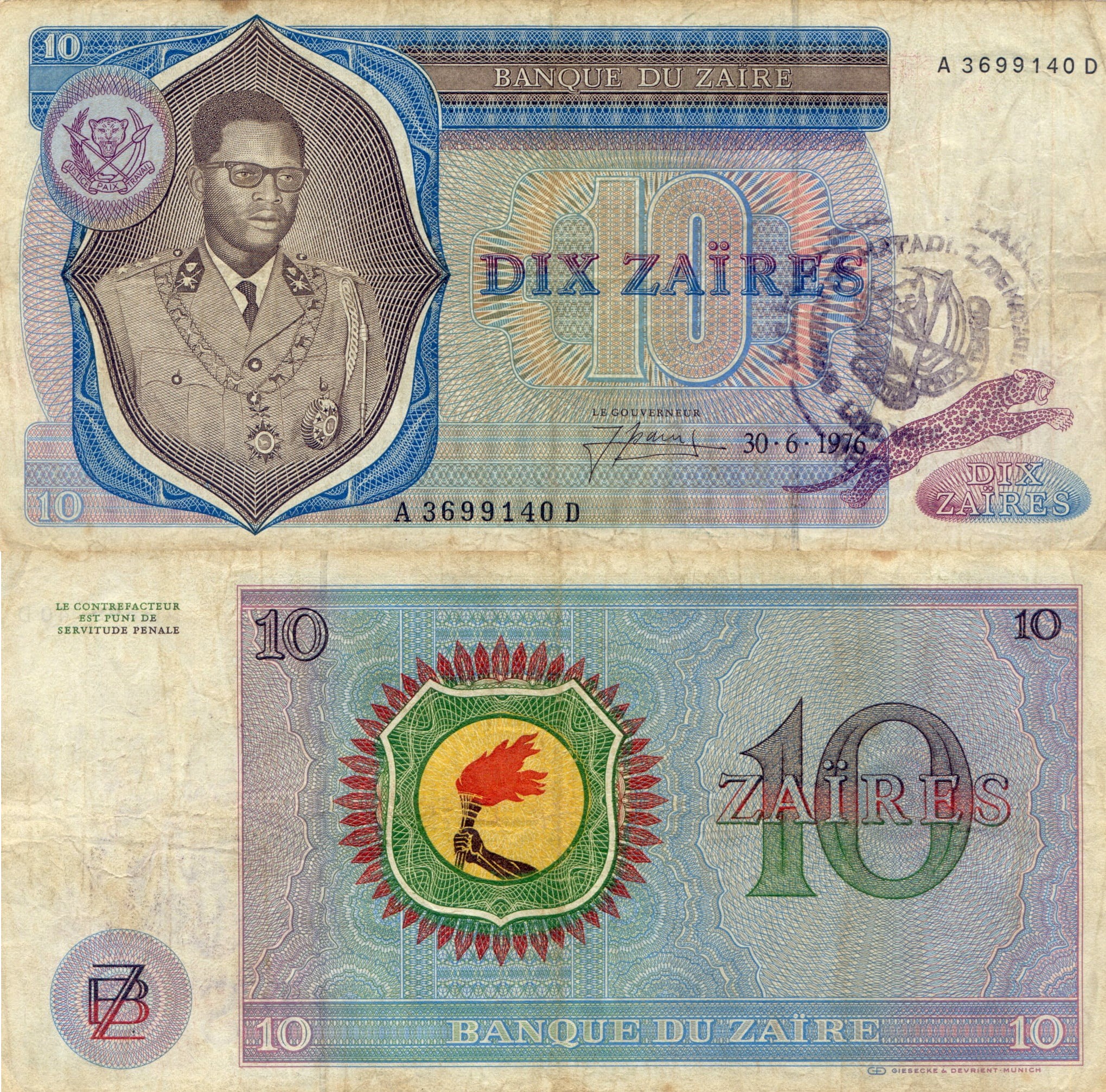 Zair 10 Zaire P-R4 1976 Stan III